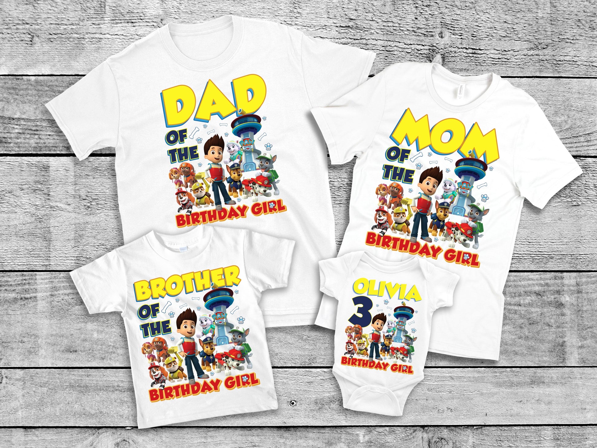 Make your family birthday celebration extra special with these adorable Paw Patrol-themed shirts! Perfect for the whole crew—from the birthday star to siblings, parents, and grandparents—these matching shirts bring the magic of Paw Patrol to your party.